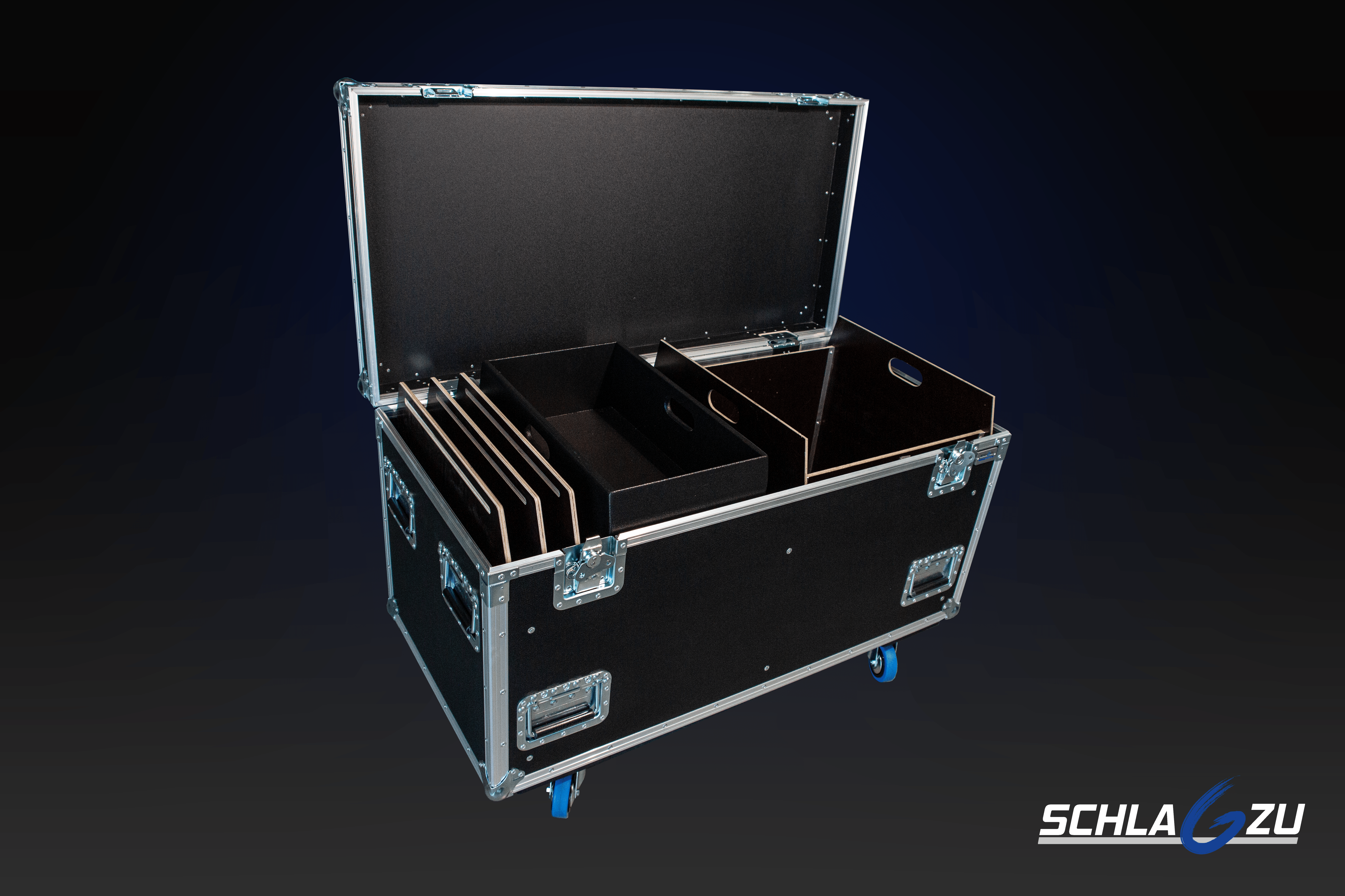 Our professional fligtcases for valuable instruments. Characteristic of the “Concert” version are the stable ramps, which are primarily integrated into the lid and can therefore be walked on without any concerns. The “Universal” models are manufactured without ramp, optionally with lid or door.