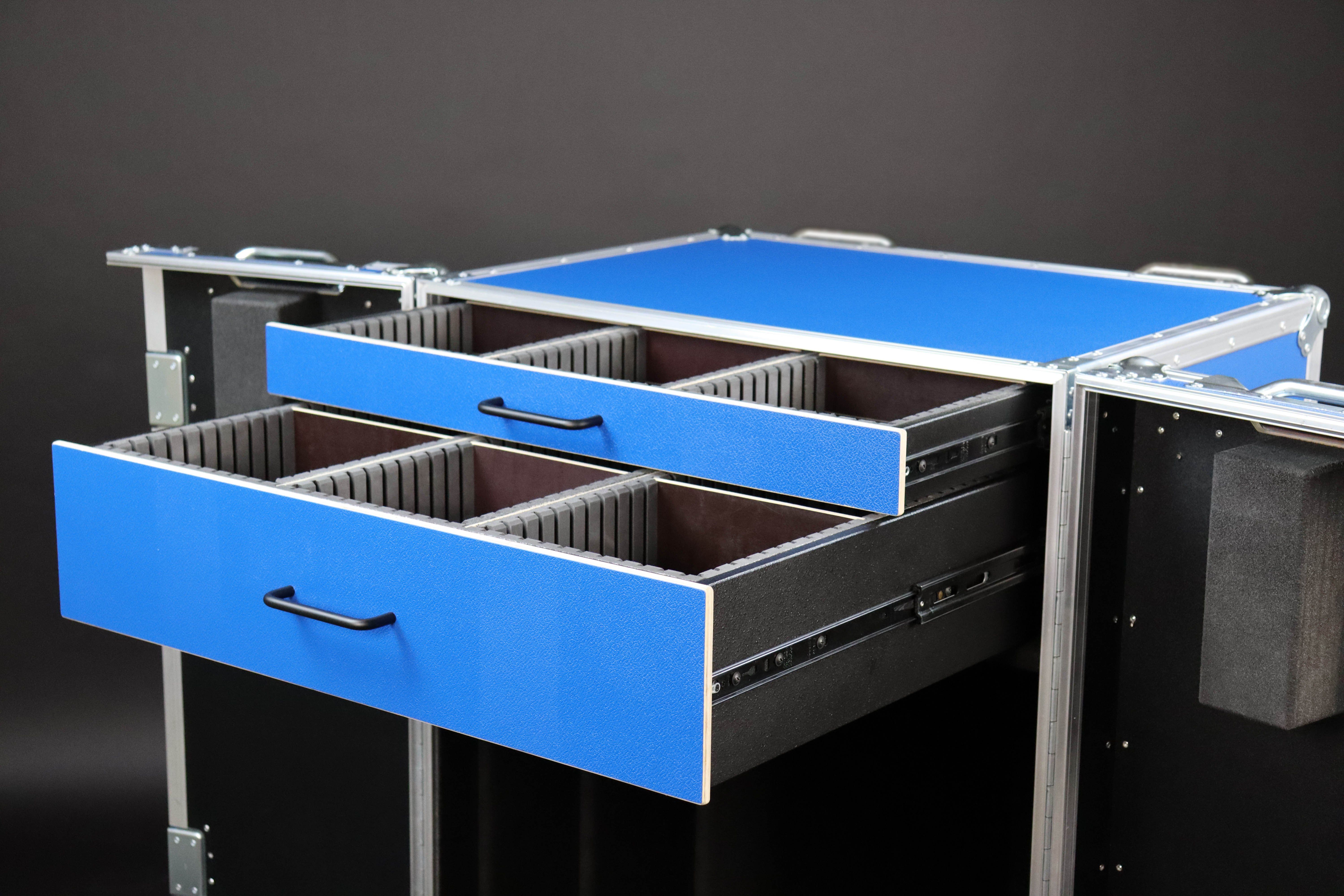 Increase your corporate Identity, give your equipment a recognition value and always have it safely in sight! 16 vibrant colours and the possibility of C&C milling are available for this. You need a flightcase customized to your ideas? No problem! We will find the solutions that fits your needs – custom-made, individual, highest quality.