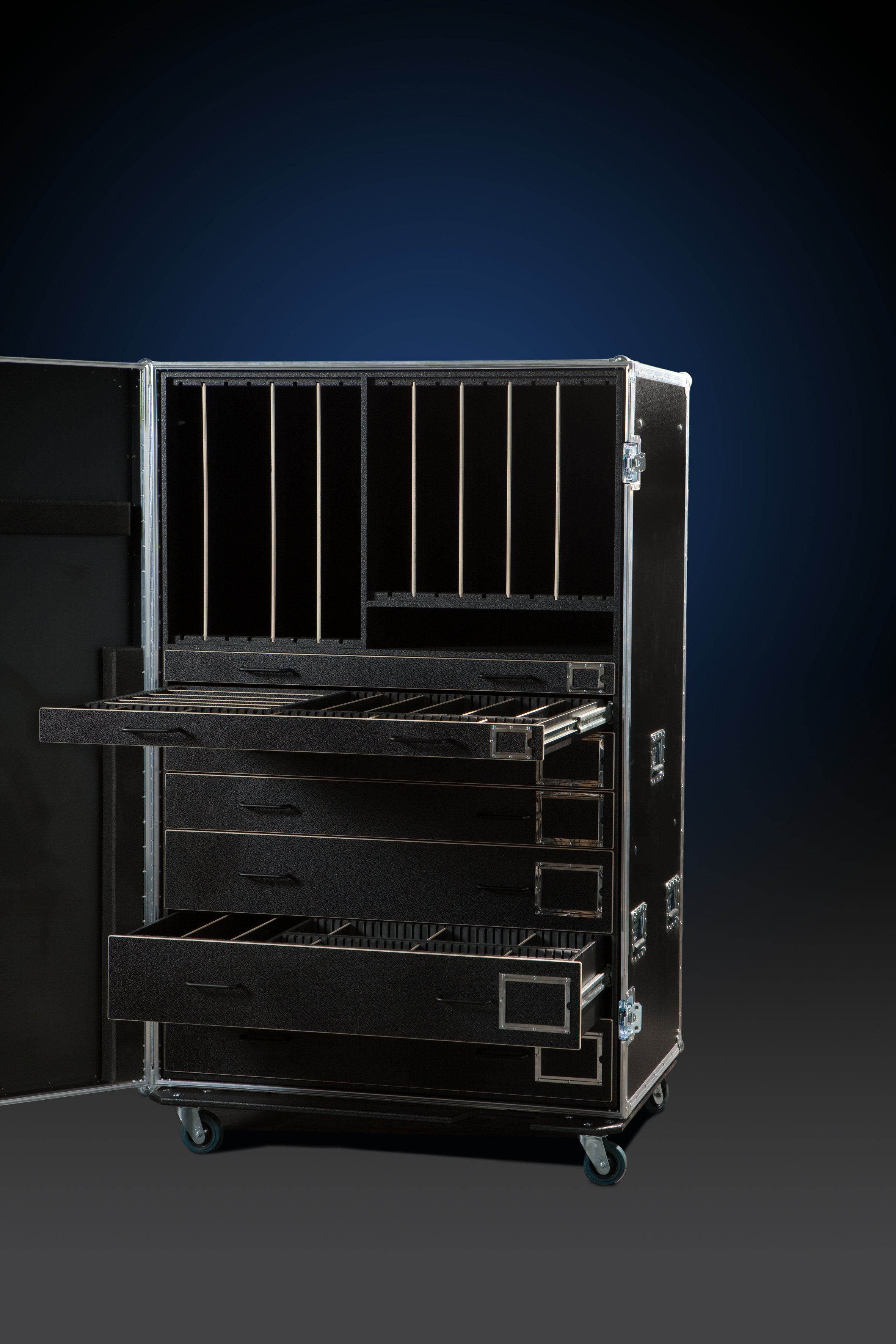 Variable drawer divisions made of grooved foam and removable, felt-covered dividers offer a range of options for personal and/or changing divisions.
