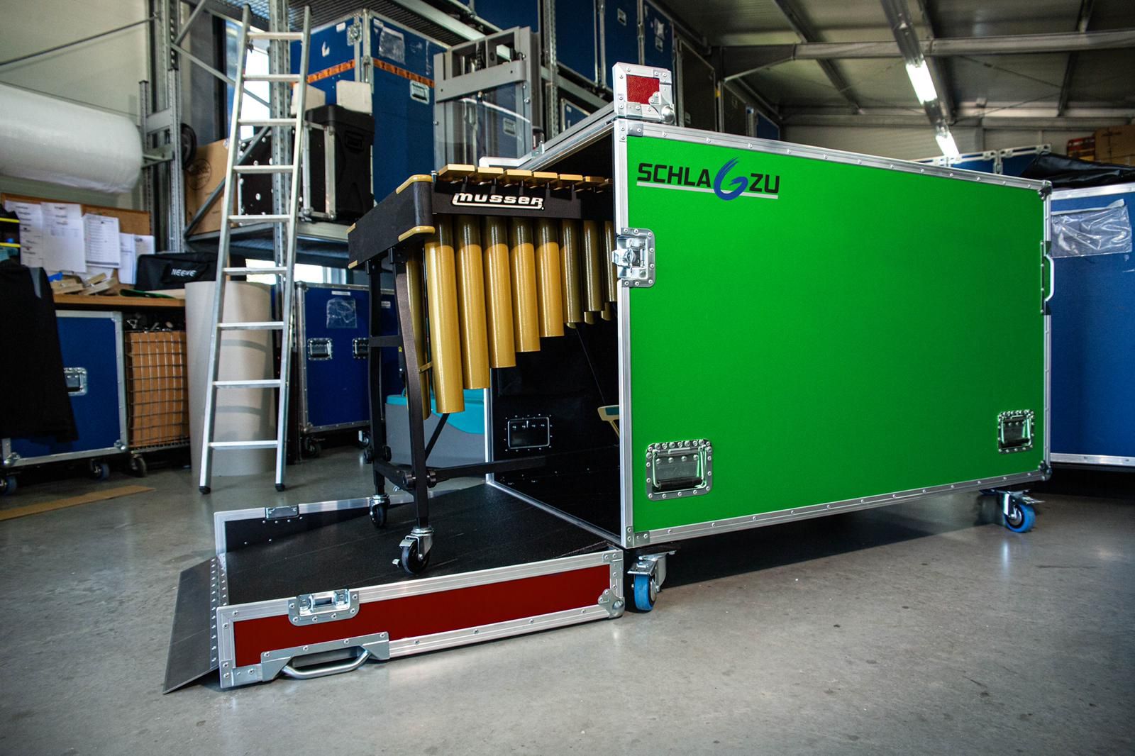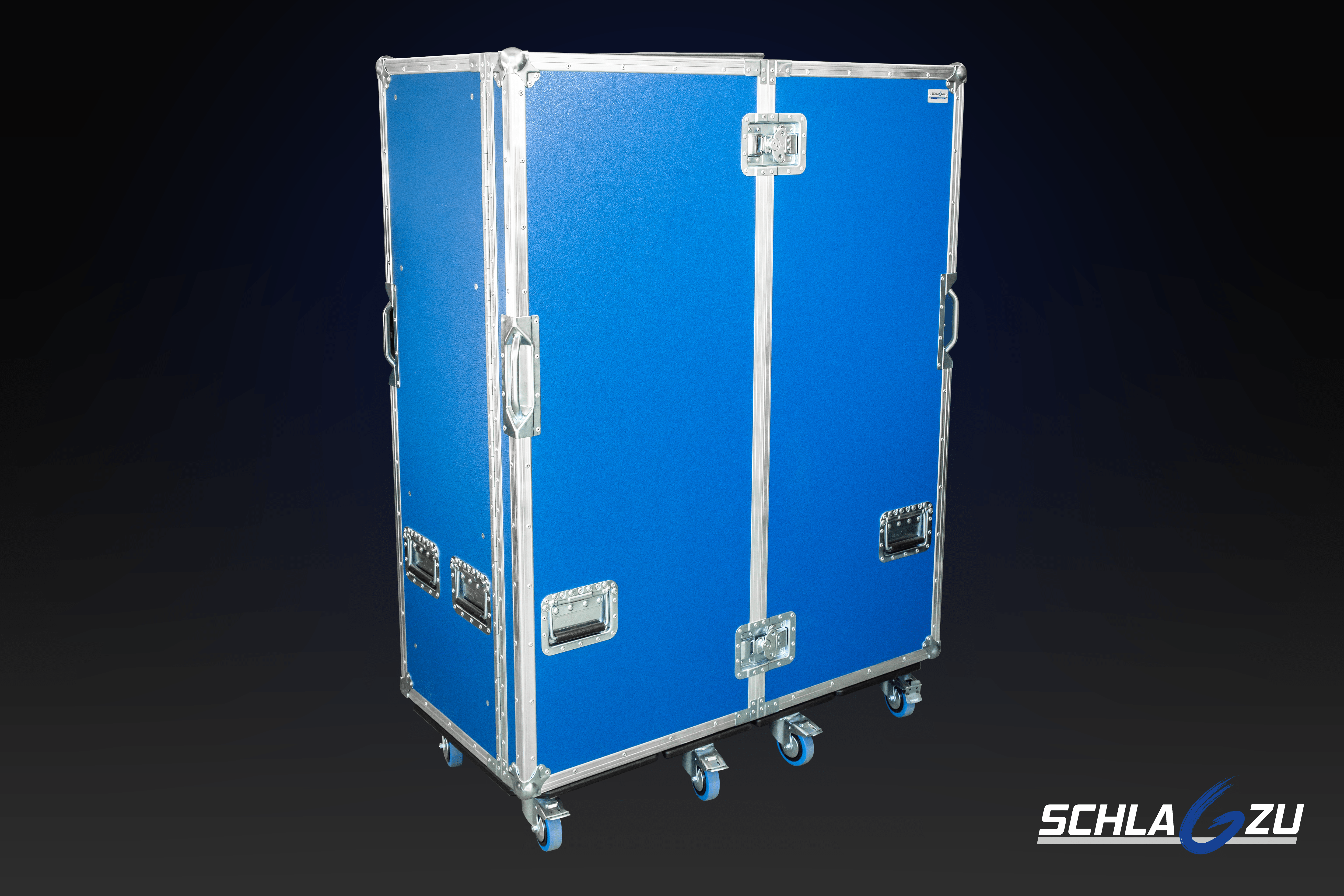Our small and big thought-out “helpers” for stage management, which make everyday orchestra life safer and more comfortable. Whenever it makes sense, we manufacture the system cases in pack size of 120x80 cm or 120x60 cm. This creates the basis for perfect, form-fit load securing, as the interior width of 240 cm in a truck allows 2-4 flightcases to be be loaded exactly flush next to each other.