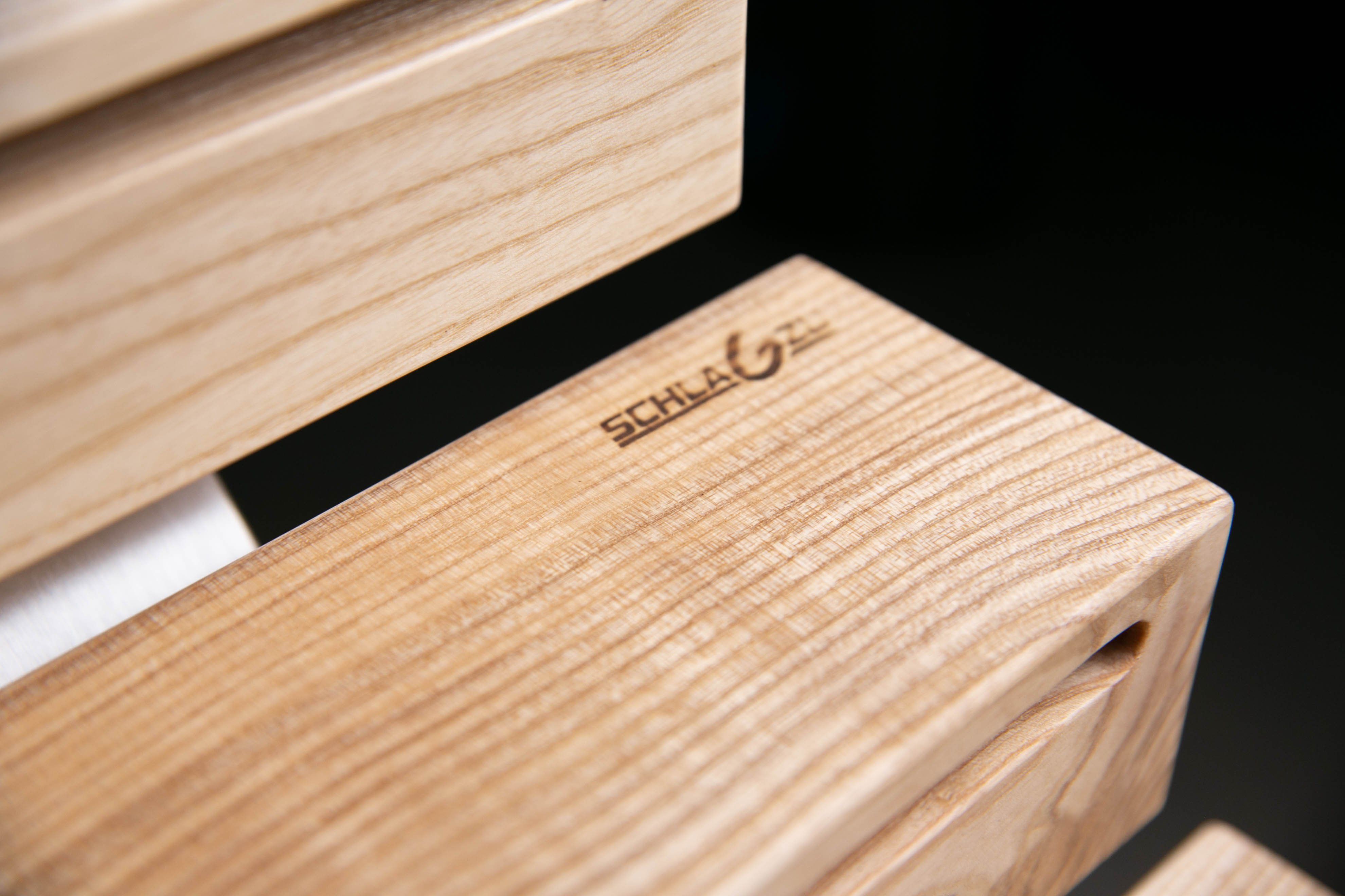 In 2020 and 2021 I had the privilege to develop the in-house woodblock series with different model types and structural designs which SchlagZu is producing ever since. In terms of quality the woodblock series hold a real pole position on the market. In addition I was able to contribute my personal artistic requirements for sound, design, type of wood, processing, durability, hardware and logistics (convenient case!). Therefore, I now have instruments at my disposal that are tailor-made for me. All my colleagues, however, were equally enthusiastic and absolutely convinced of the new quality and this new benchmark of wood sound and volume - from my point of view an absolute must-have for every drummer and every university or conservatory from now on!